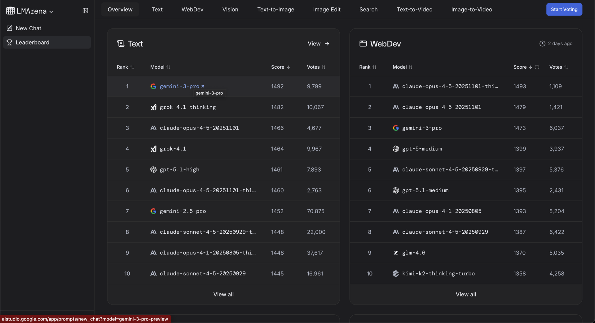 And right now, Gemini 3 has taken the lead on LMArena at the moment, but for text only.