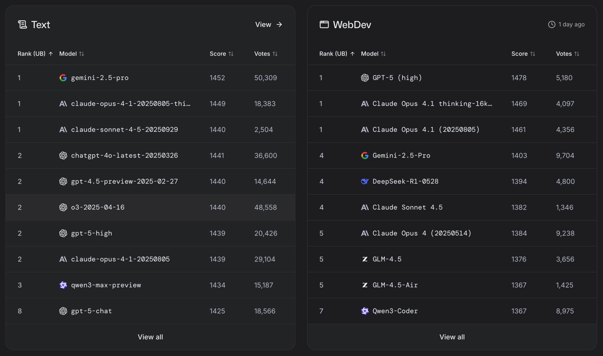 Sonnet 4.5 has climbed it’s way to tied for 1 in Text and tied for 4 in WebDev on LMArena so it’s clearly testing well.