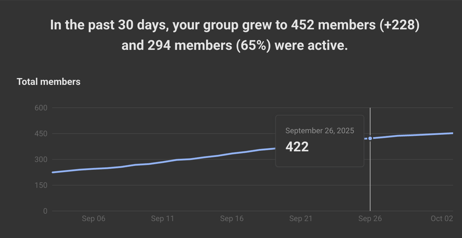 The YouTube channel grew by 28 subscribers with zero uploads, and the Skool community grew even more, gaining 33 members in the last 7 days.