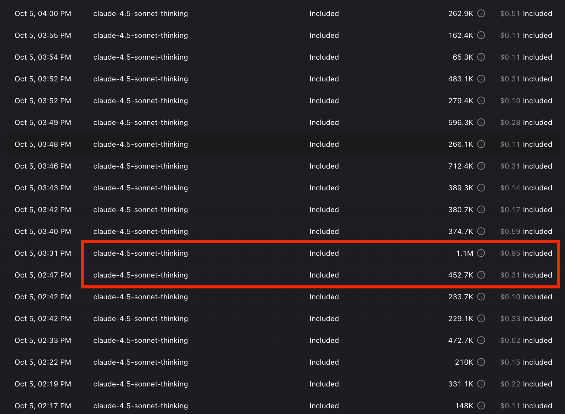 sonnet 4.5’s cost for 1.1 million tokens: $.95