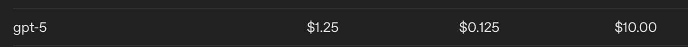 gpt-5’s cost for 1.2 million tokens: $.17