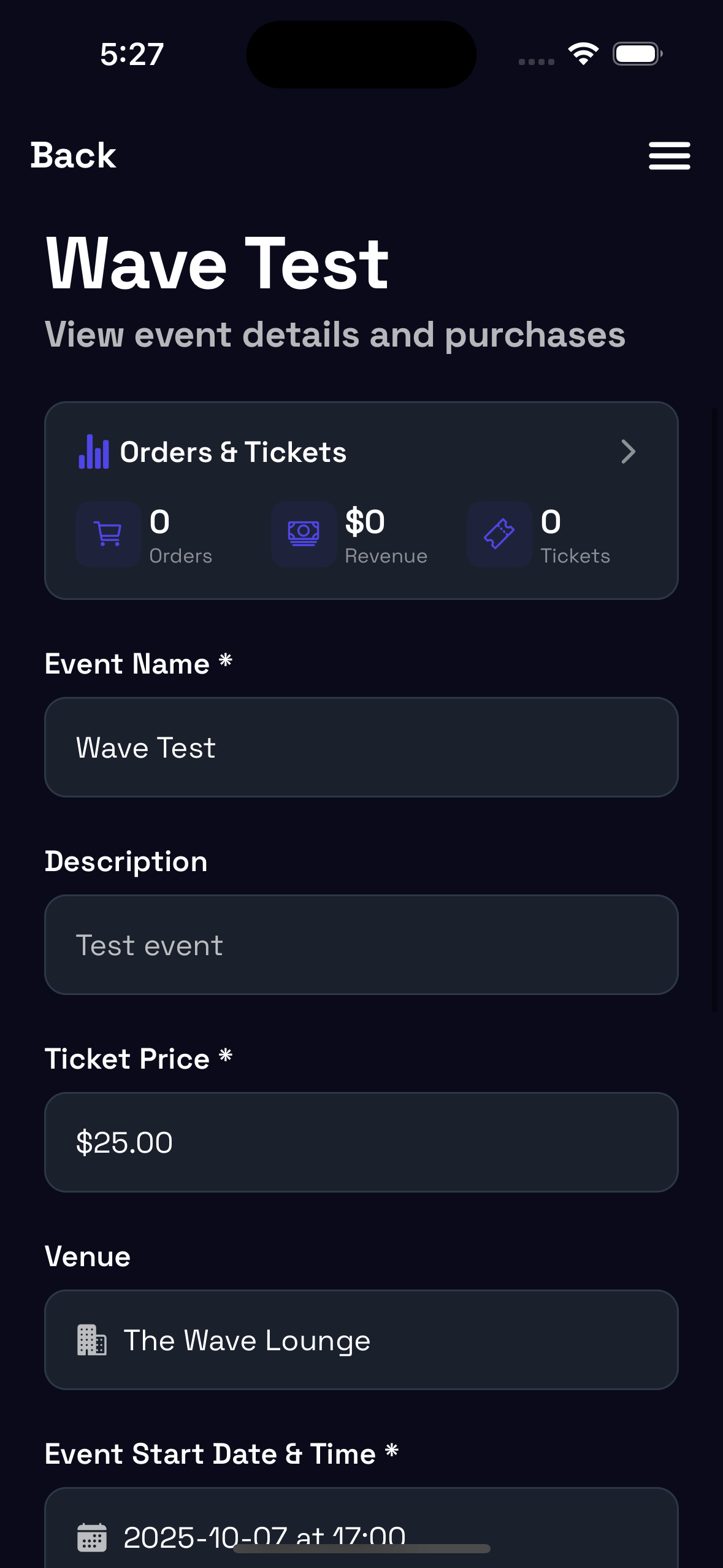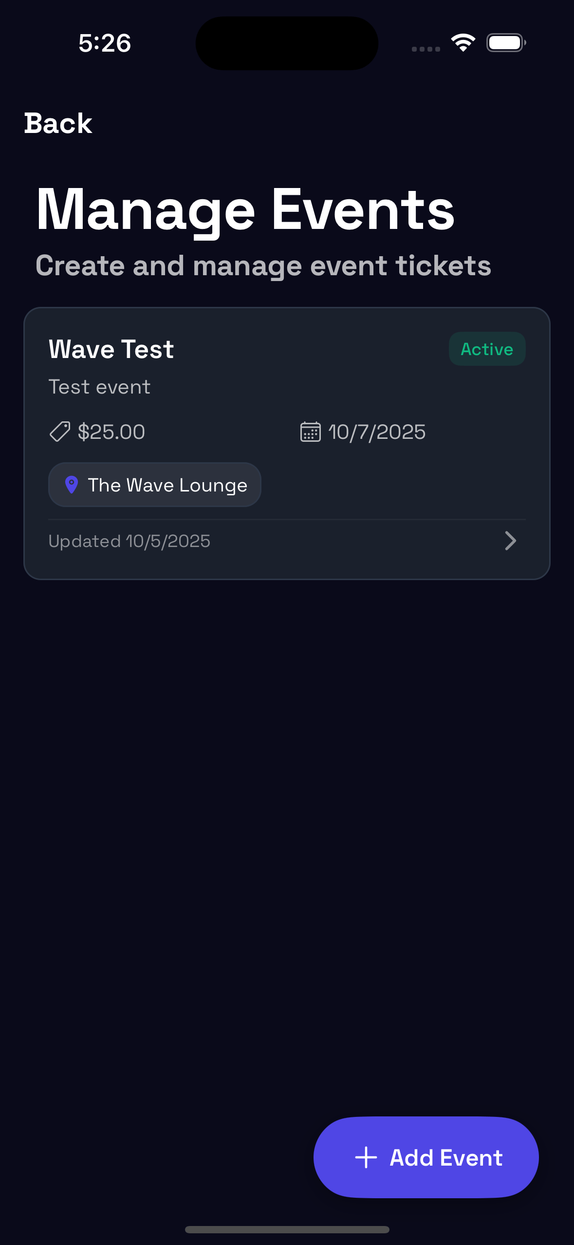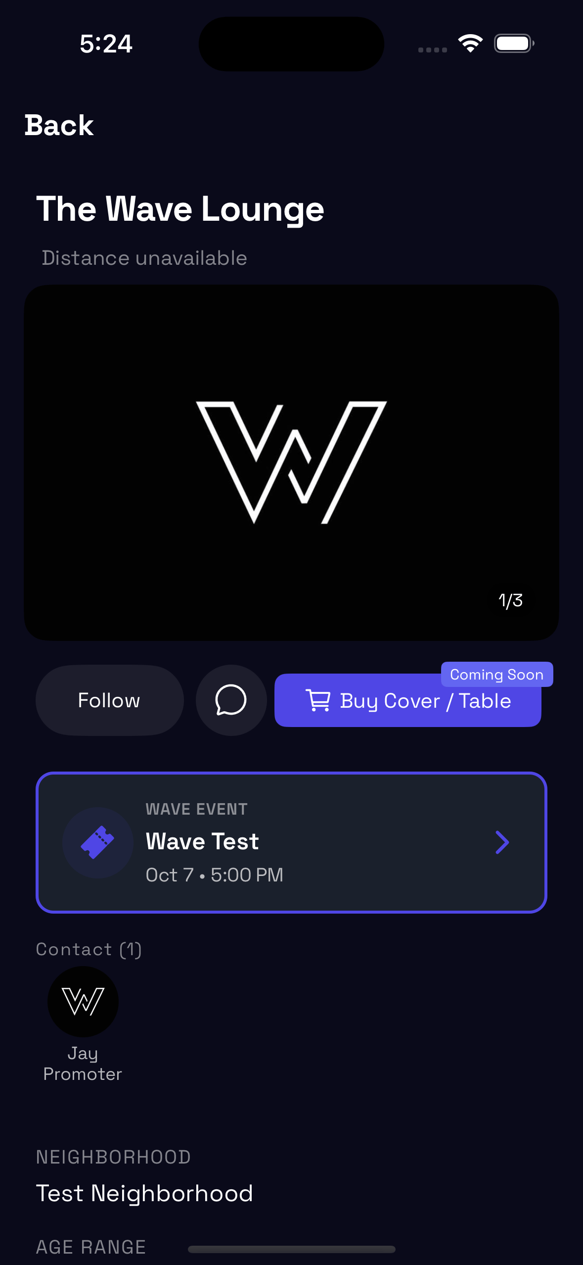 Since a Wave event in this situation would be owned by Wave, but hosted at a venue, it seemed logical to make the event button a separate button.