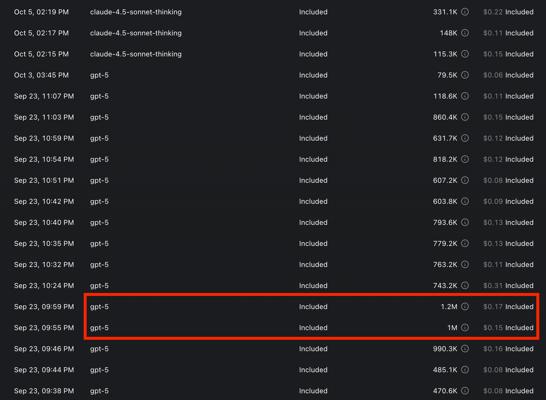 gpt-5 costs in Cursor