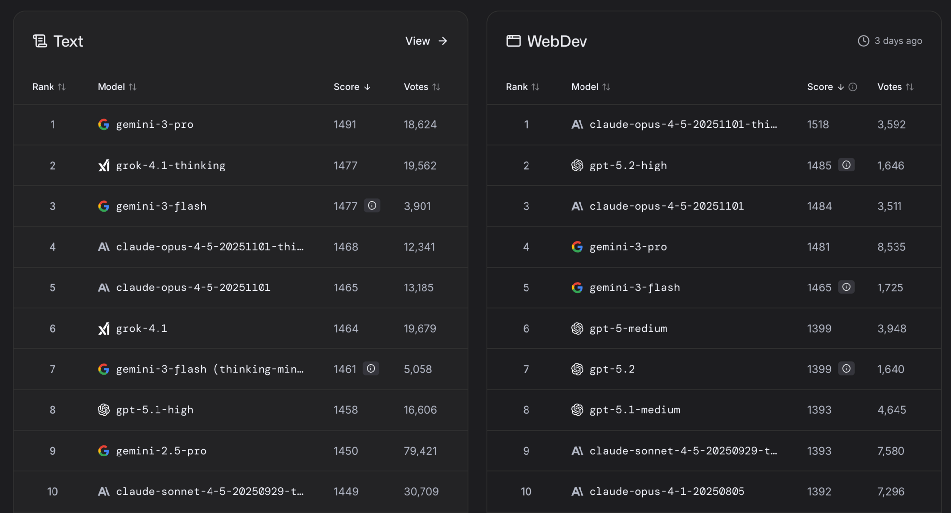 gemini-3-pro rank 1, grok-4.1-thinking rank 2, gemini-3-flash already rank 3